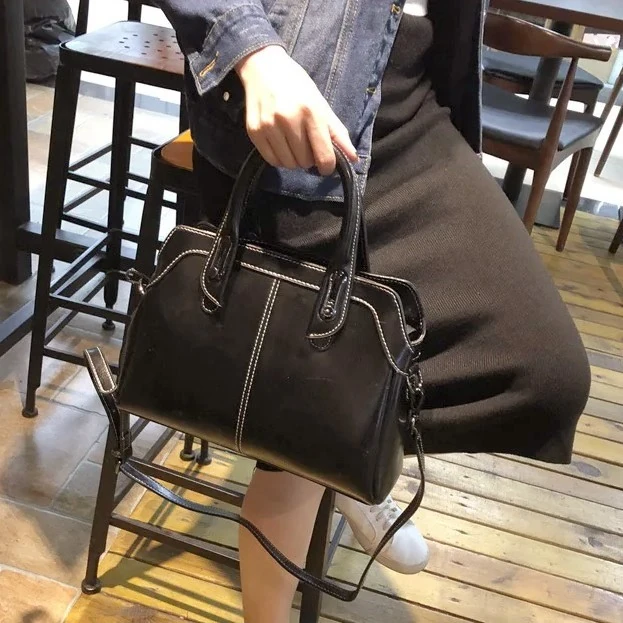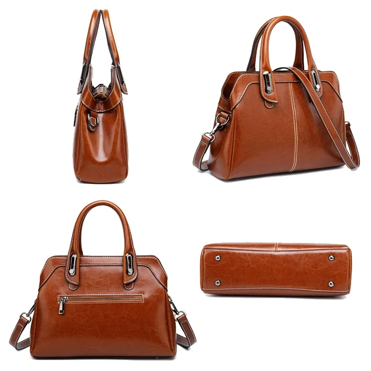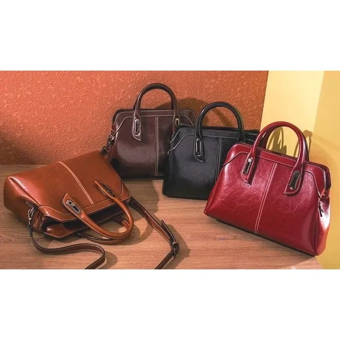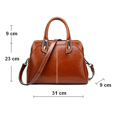 Handväska dam byggs i tätfiberläder som motstår sprickor. Läderväska dam får stabil form genom kantförstärkning.