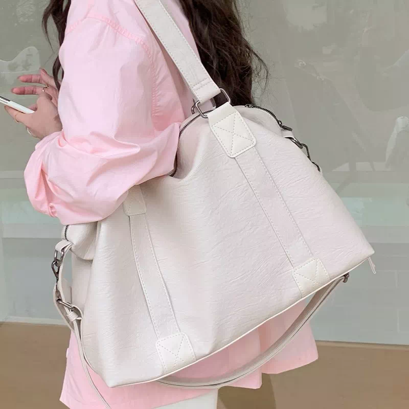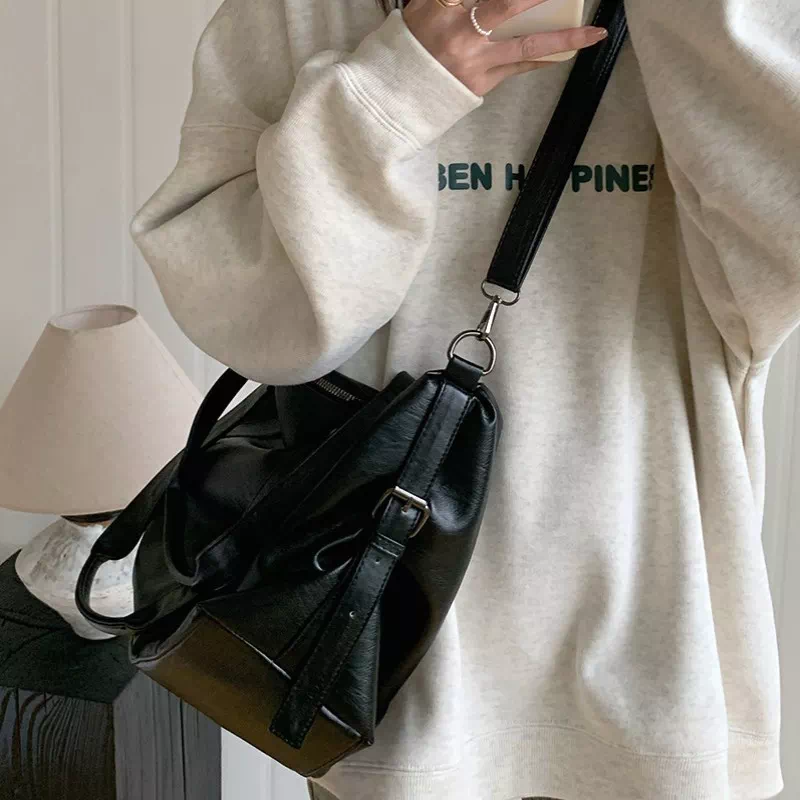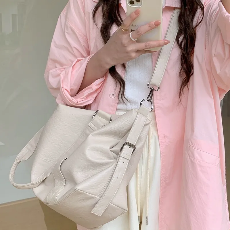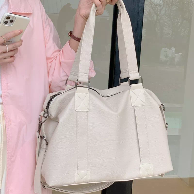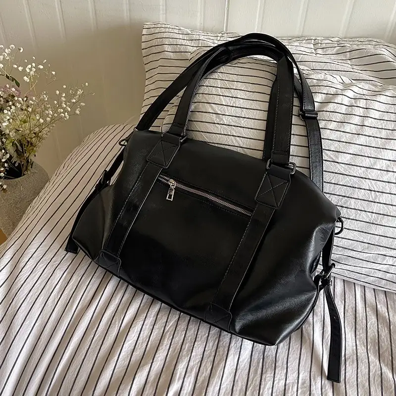 Denna väska axelväska kombinerar mode och funktion. Axelremmen är justerbar och gör väskan bekväm att bära. Handtagen är starka och ger stabilitet. Insidan har gott om utrymme och ett skyddande foder. PU-läder gör ytan tålig mot slitage och enkel att rengöra. Färgerna svart, vit och brun passar olika tillfällen.