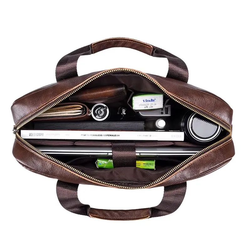 Denna handväska herr kombinerar stil och funktion för moderna män. Den rymmer en 14-tums dator och håller dina saker väl organiserade.